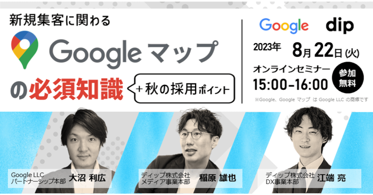 【8月22日開催】新規集客に関わるGoogle マップの必須知識+秋の採用ポイント、ディップ株式会社主催