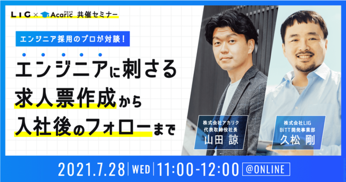 【7月28日開催】エンジニアに刺さる求人票作成〜入社後フォローまで、株式会社アカリク・株式会社LIG共催