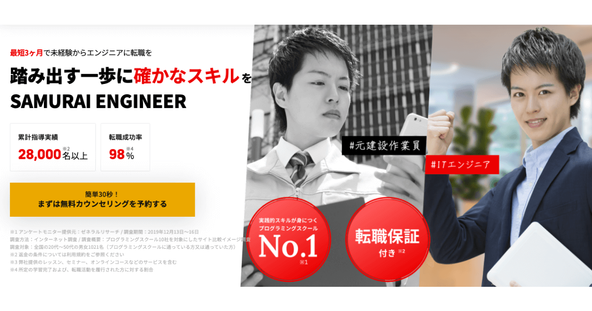 株式会社SAMURAI、オンラインプログラミング塾「SAMURAI ENGINEER」で「転職保証コース」を提供開始
