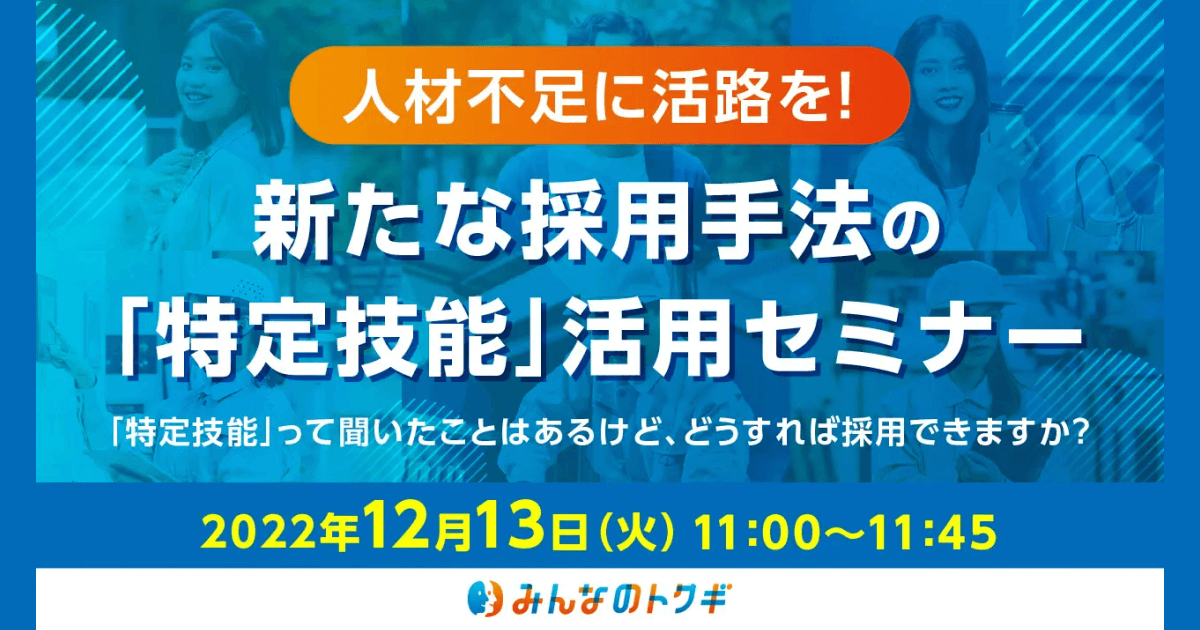 【12月13日開催】新たな採用手法「特定技能」活用セミナー、株式会社天職市場主催
