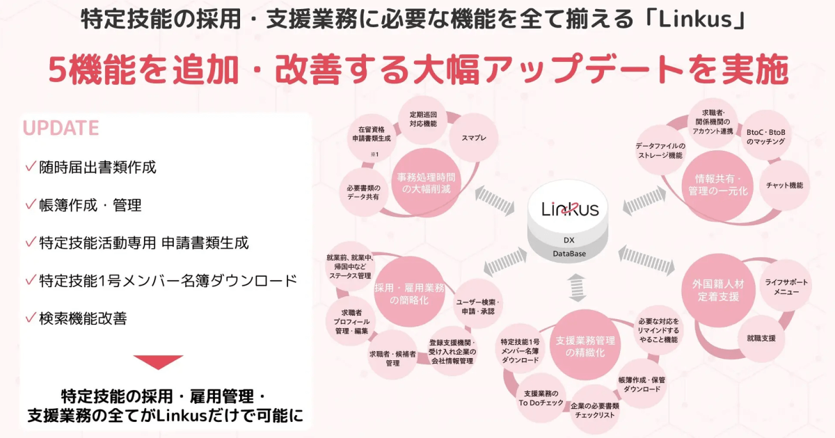 BEENOS HR Link株式会社、特定技能特化のHRプラットフォーム「Linkus」において機能を追加・改善