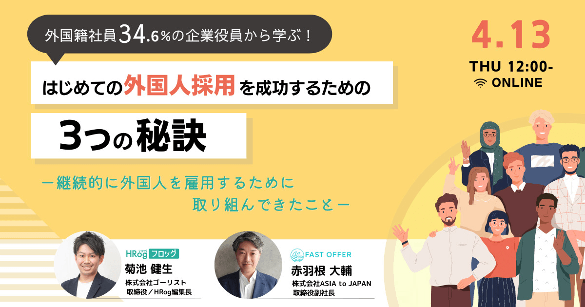 【4月13日開催】はじめての外国人採用を成功するための3つの秘訣、株式会社ASIA to JAPAN・株式会社ゴーリスト共催
