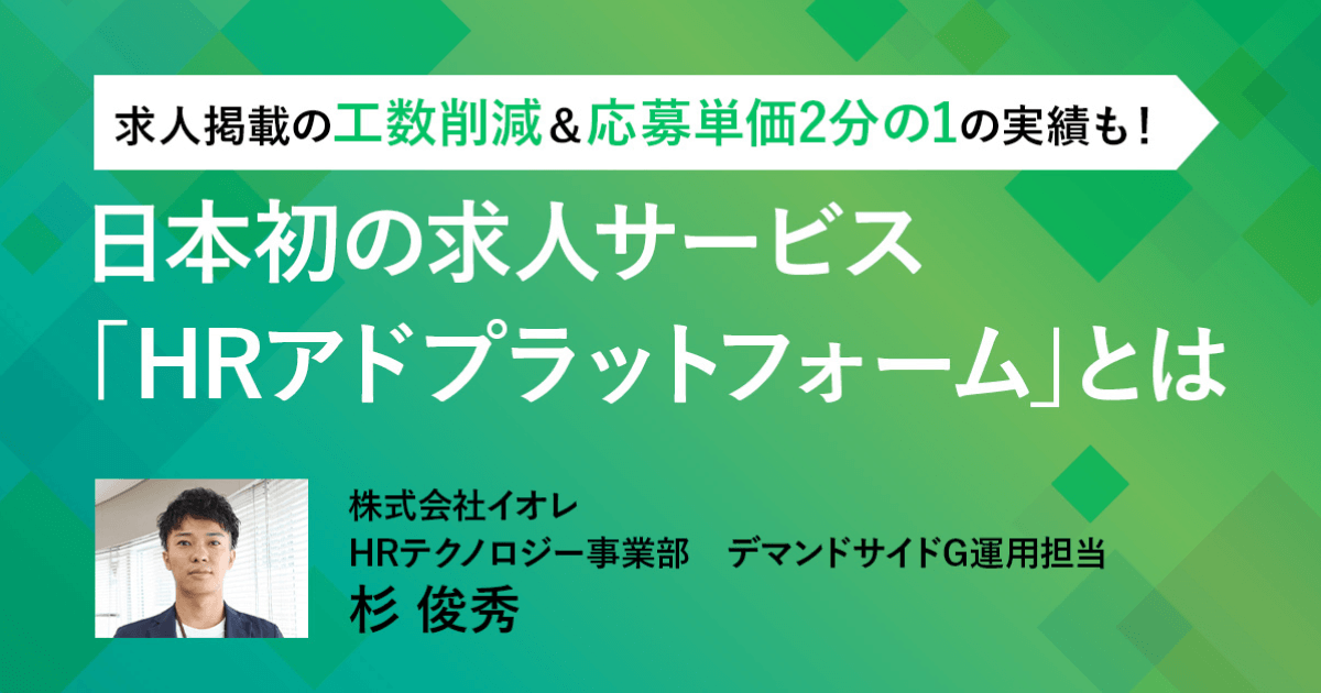 【6月25日開催】求人掲載の工数削減&応募単価2分の1の実績も!日本初の求人サービス『HR アドプラットフォーム』とは、株式会社イオレ主催